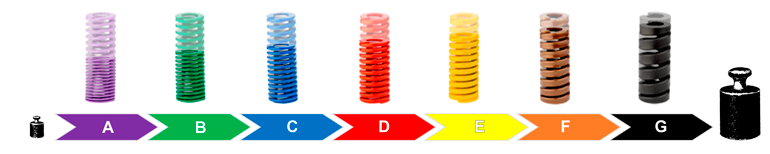 Vzmeti so razdeljene v barvne skupine glede na jakost vzmeti.